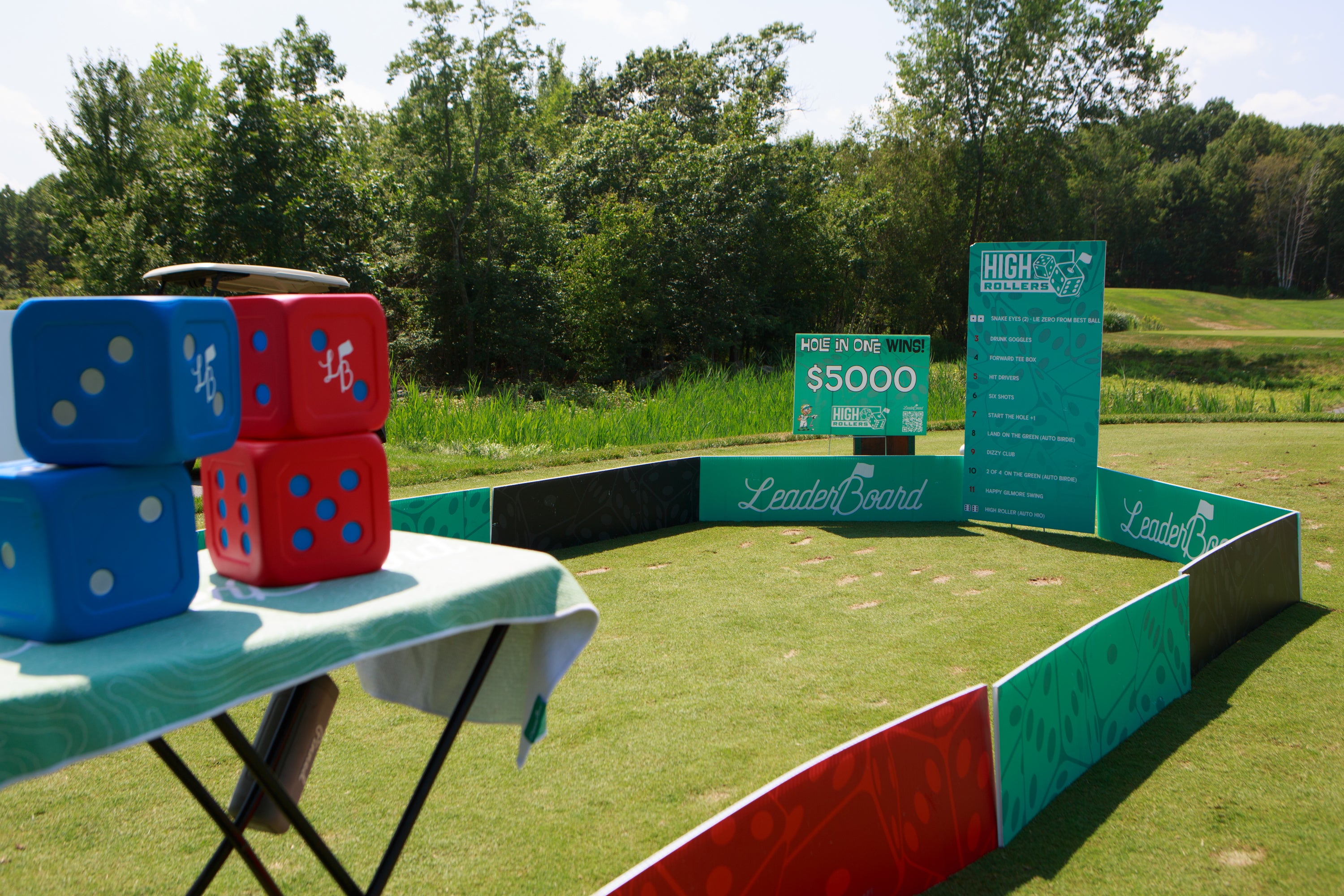 High Rollers is a high stakes, Par 3 contest, where rolling giant dice results in either an advantage or disadvantage based on the combination. The team can decide who's combination they would like to use and play out the hole!